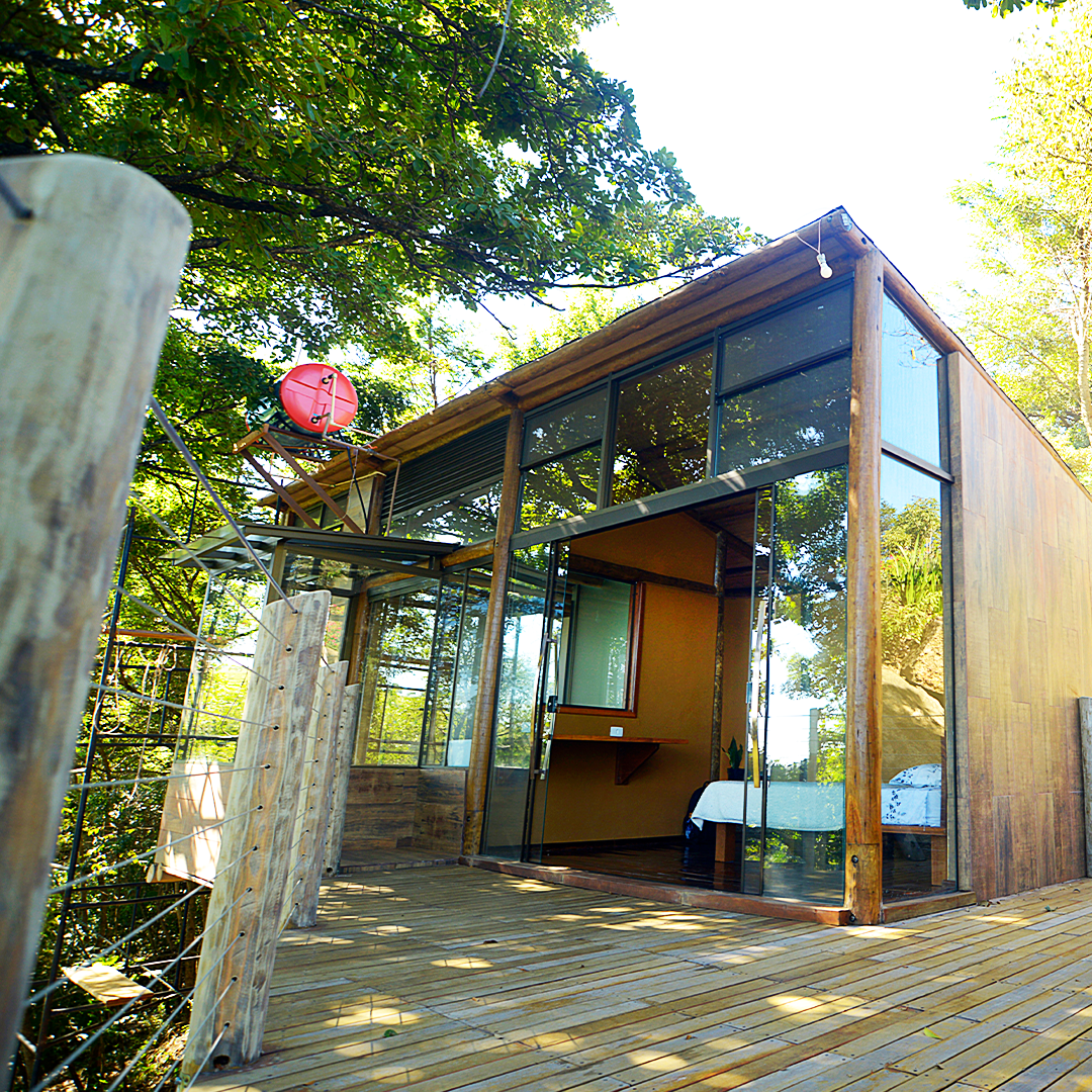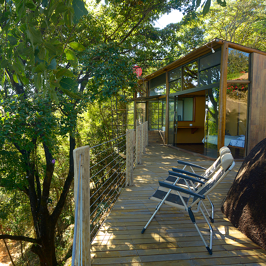 Com capacidade para receber confortavelmente duas pessoas por noite, o Chalé da Árvore é o ambiente ideal para quem busca relaxamento e privacidade. O local foi cuidadosamente escolhido para acolher a sombra de uma grande árvore e oferecer uma experiência ímpar de contato com a natureza.